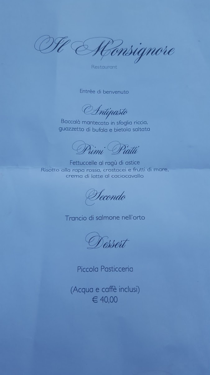 In conclusion, the menu at Ristorante Il Monsignore reflects a thoughtful balance between traditional Italian flavors and refined presentation, with each dish showcasing careful ingredient selection and classic culinary technique. The Fettuccelle Al Ragù Di Astice stands out as a memorable pasta dish, combining perfectly cooked fettuccelle with a rich, flavorful lobster ragù that feels both indulgent and well-balanced. The Branzino is another highlight, prepared simply to emphasize the freshness and delicate taste of the fish, making it an excellent choice for those who appreciate lighter yet elegant main courses. For something more casual but equally satisfying, the Panini Caldi offer warm, comforting flavors with quality fillings that make them a pleasant option for a relaxed meal. Overall, the menu presents a cohesive selection that caters to different preferences while maintaining a consistent level of quality and authenticity, leaving a strong impression of a kitchen that values both tradition and careful execution.